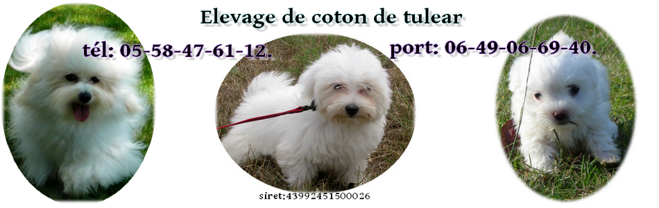 Pour des renseignements sur les chiots coton de tuléar en vente merci de contacter l'élevage au tél: 05-58-47-61-12